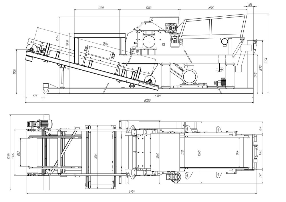 Над выгрузкой бункера находится валок, корпус которого шарнирно закреплен на дробилке, позволяя валку подниматься на высоту до 600 мм. Вращение валка осуществляется от установленного на валу мотор-редуктора.