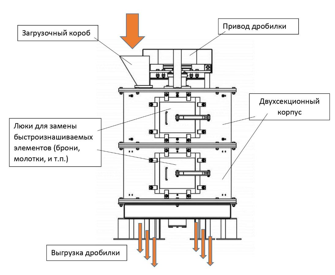 Вертикальная дробилка ВД-1С — дробилка ударного действия с вертикальным расположением ротора предназначен для измельчения легкодробимых кусковых материалов средней прочности и влажностью до 7%.